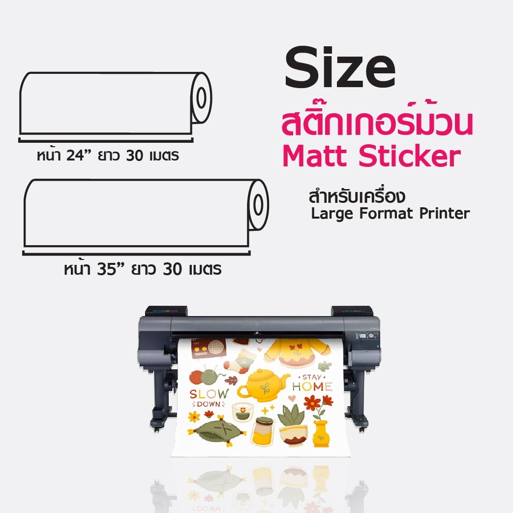 – สติกเกอร์เนื้อกระดาษสีขาวเคลือบน้ำยาพิเศษเกรด Premium ผิวด้าน สำหรับเครื่องพิมพ์ Inkjet