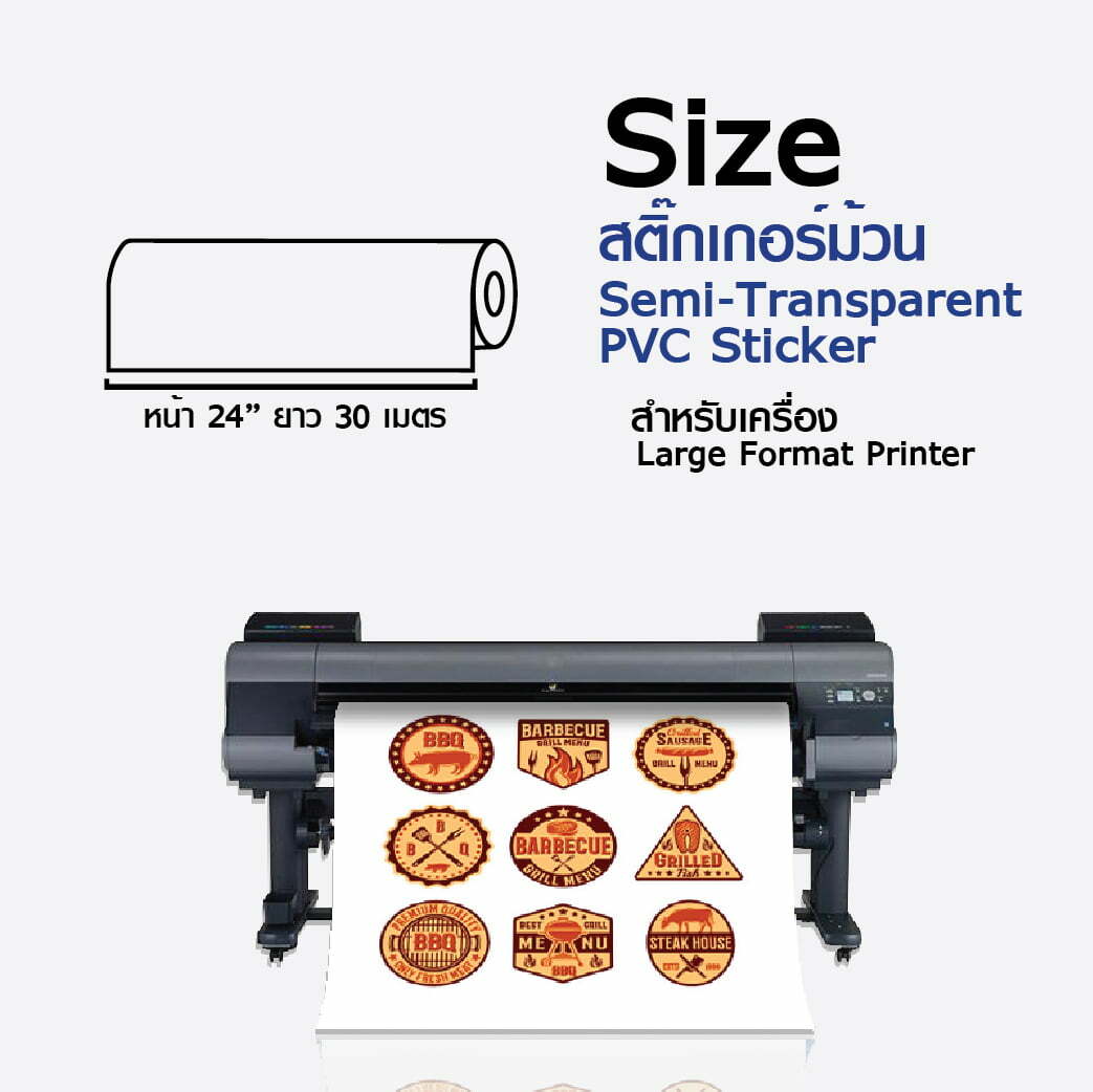 สติ๊กเกอร์พีวีซี ขาวขุ่น กันน้ำ 100 ไมครอน แบบม้วน หน้ากว้าง 24 นิ้ว