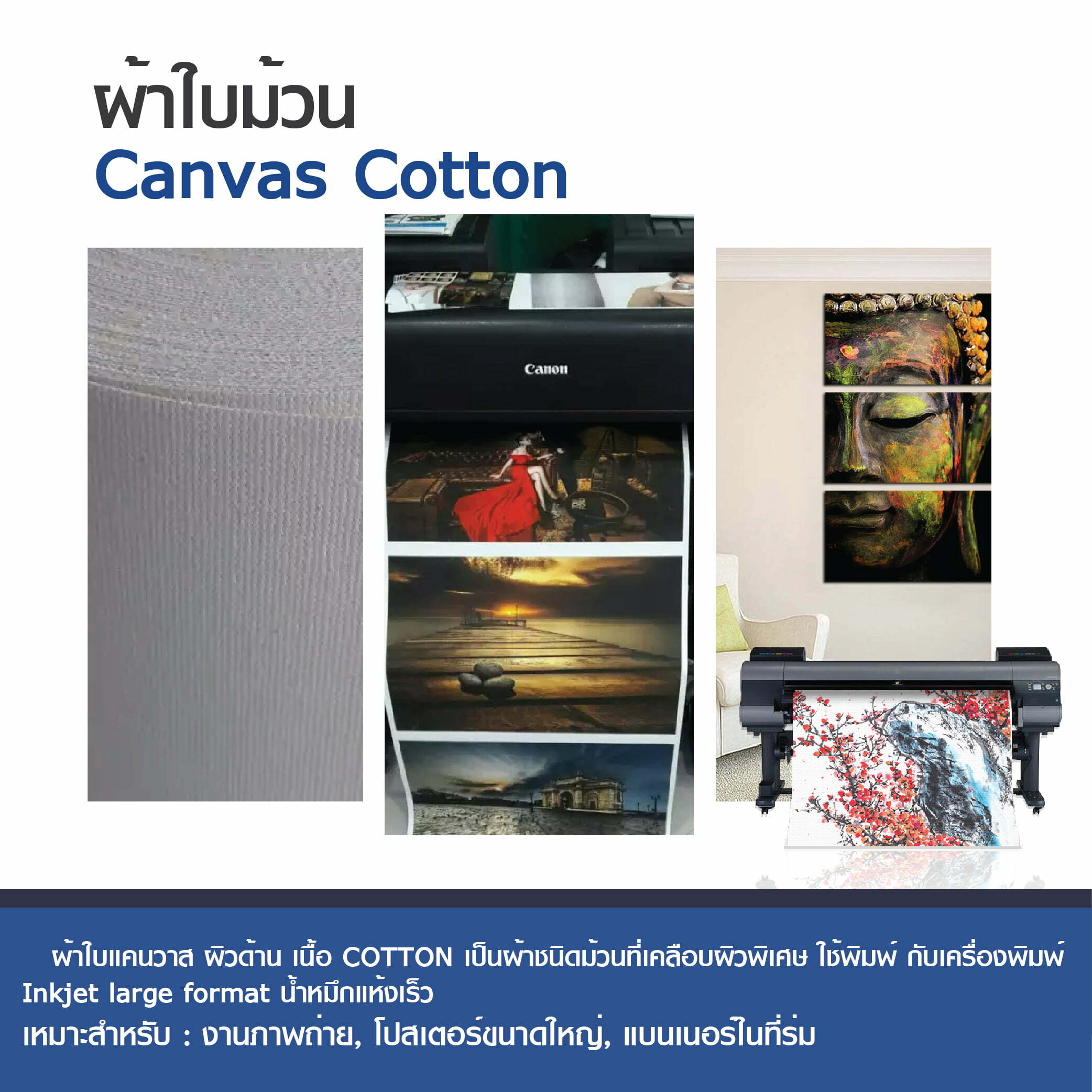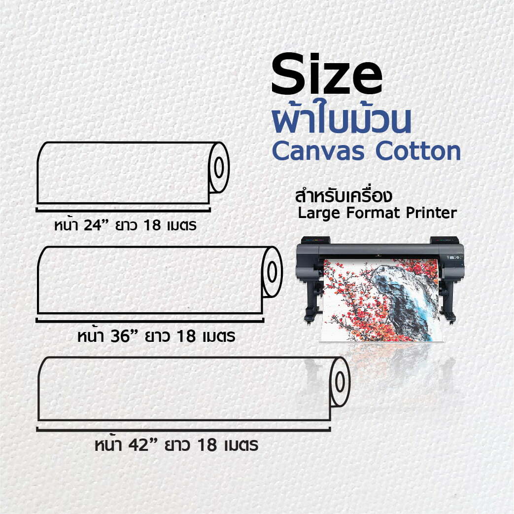– ผ้าใบ Canvas เนื้อ Cotton สีขาวเคลือบน้ำยาพิเศษเกรด Premium ผิวด้าน สำหรับเครื่องพิมพ์ Inkjet ขนาดม้วน