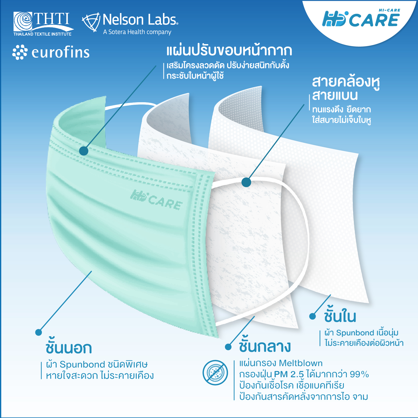 1. ป้องกันอนุภาคของเหลว และฝุ่นละออง PM 2.5