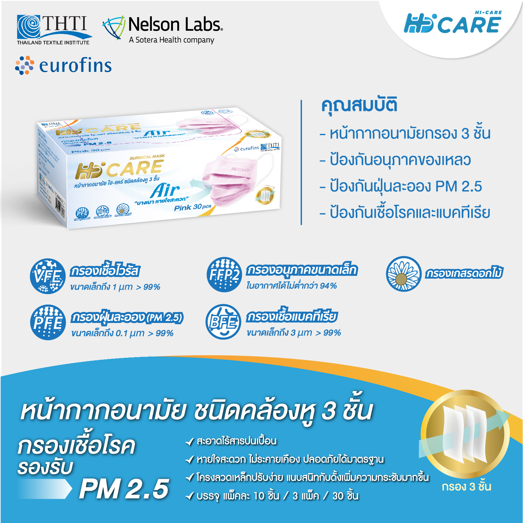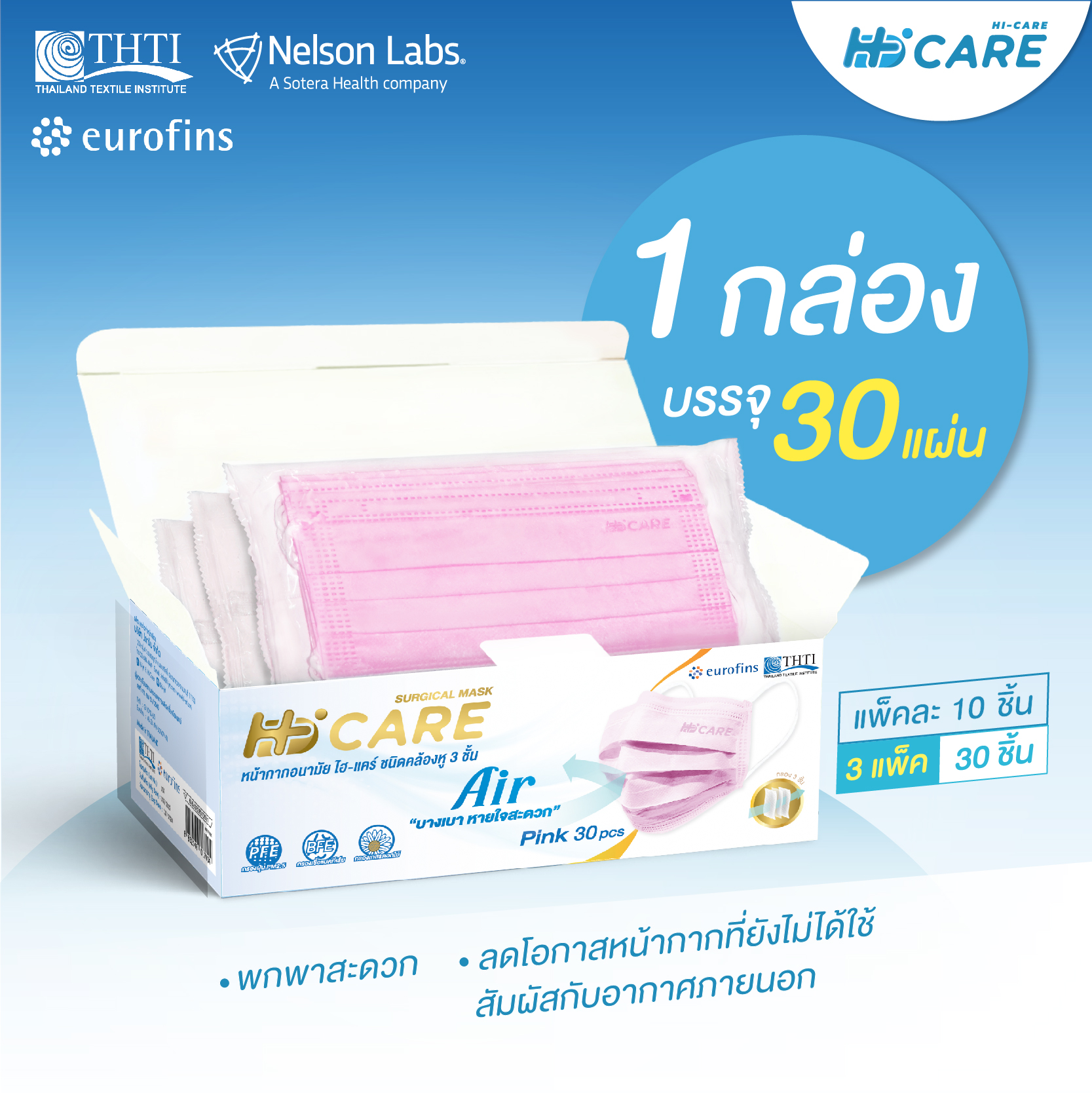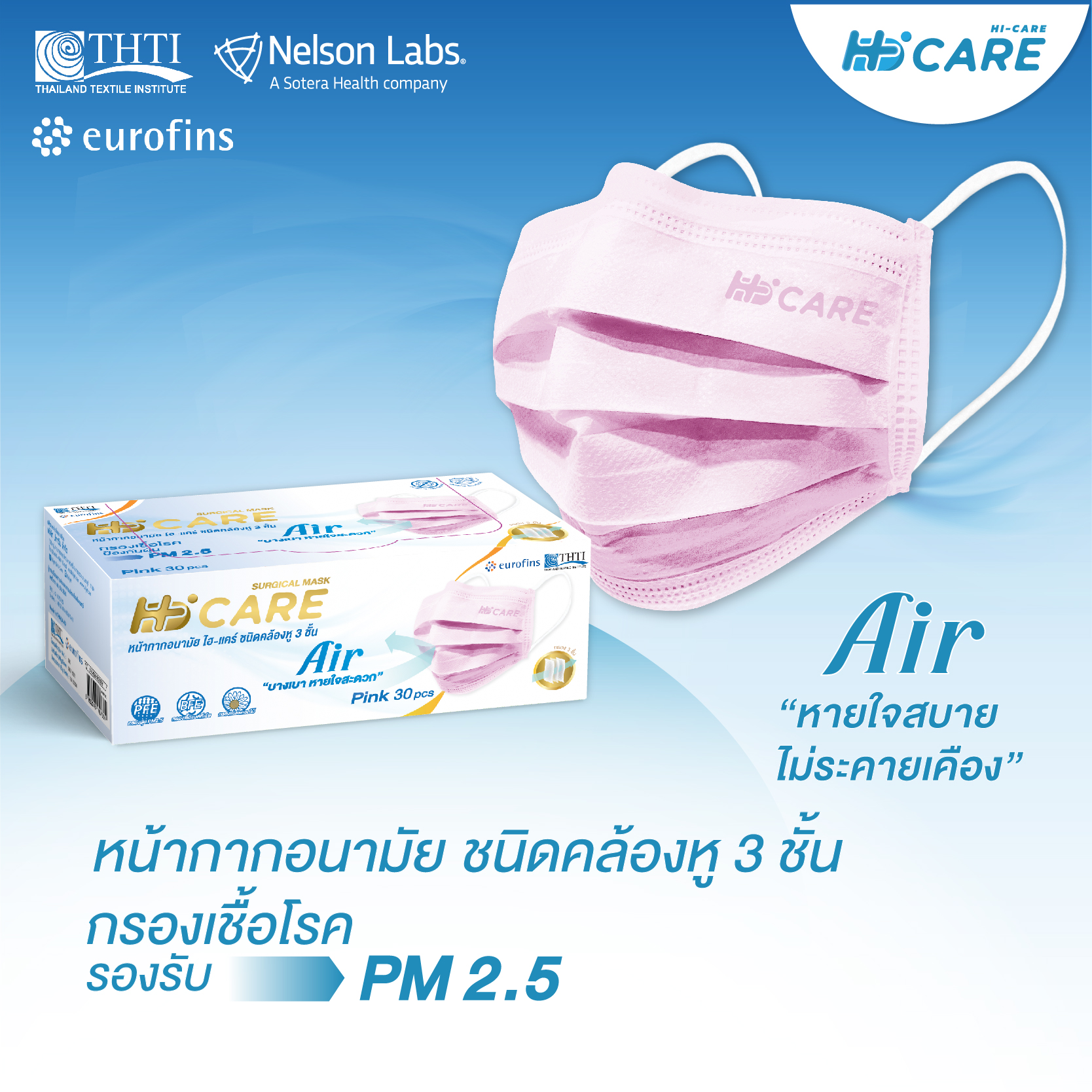 – หน้ากากอนามัย Hi-Care Air เบาสบาย หายใจสะดวก ไม่ระคายเคือง (รองรับ PM2.5 กรองเชื้อโรค) แผ่นกรอง 3 ชั้น ชนิดคล้องหู สีชมพู