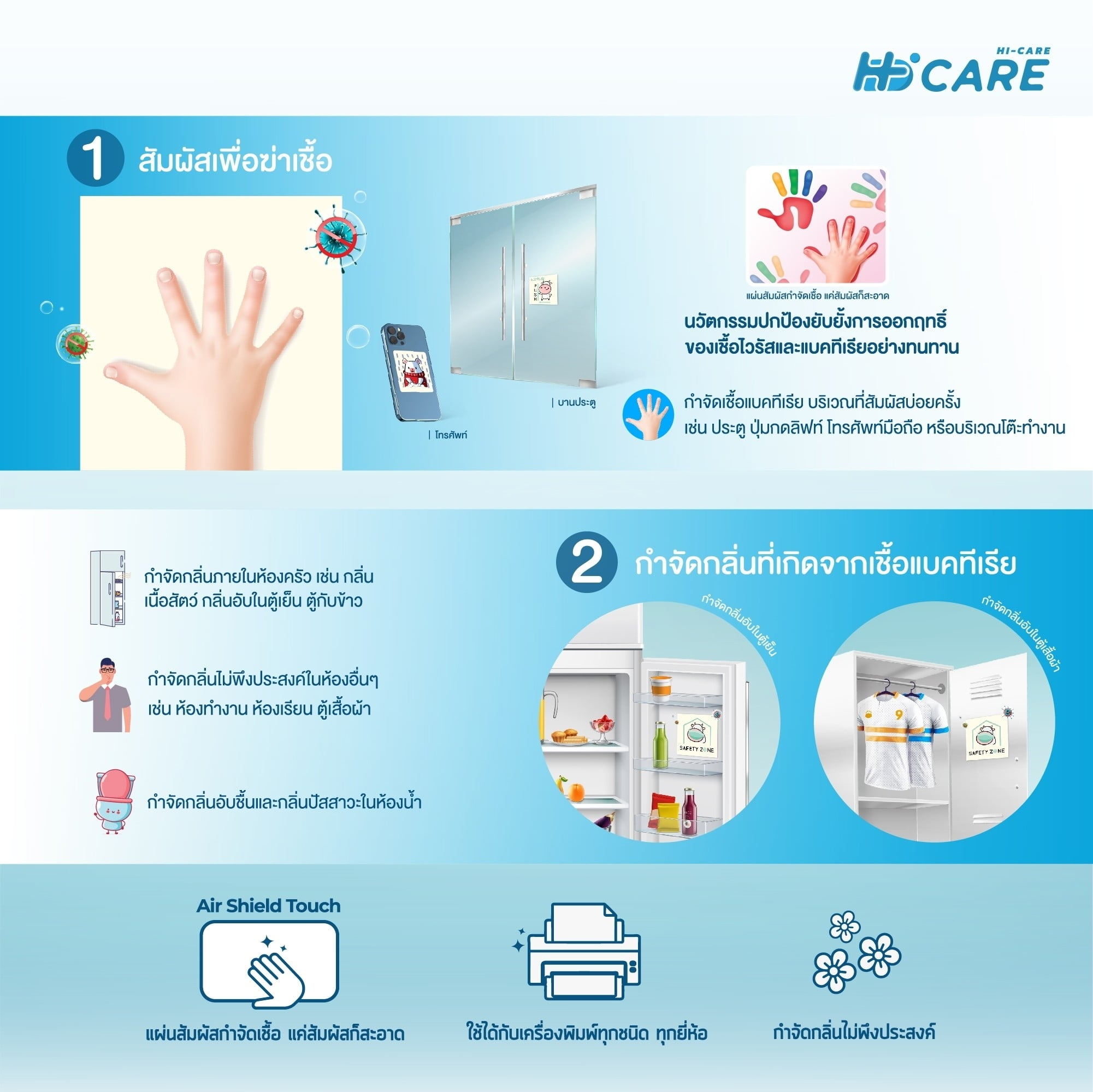 3. นำไปติดได้ทุกพื้นที่ที่มีการสัมผัสบ่อยครั้ง เช่นประตู ปุ่มกดลิฟท์ โทรศัพท์มือถือ หรือบริเวณโต๊ะทำงาน