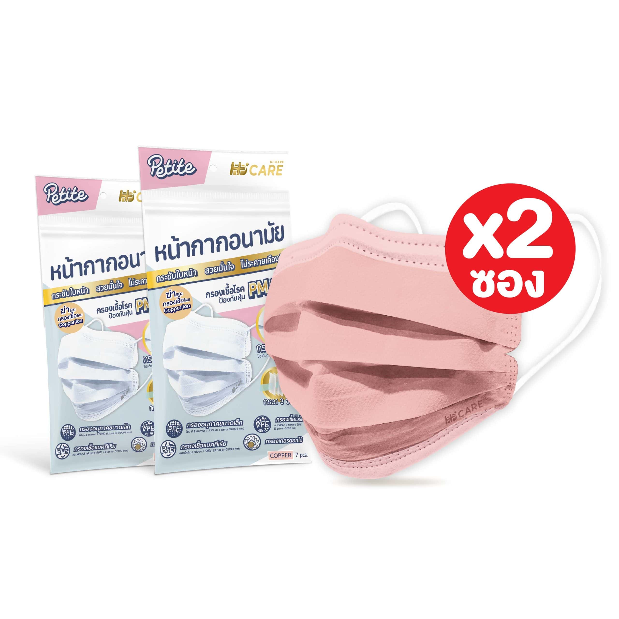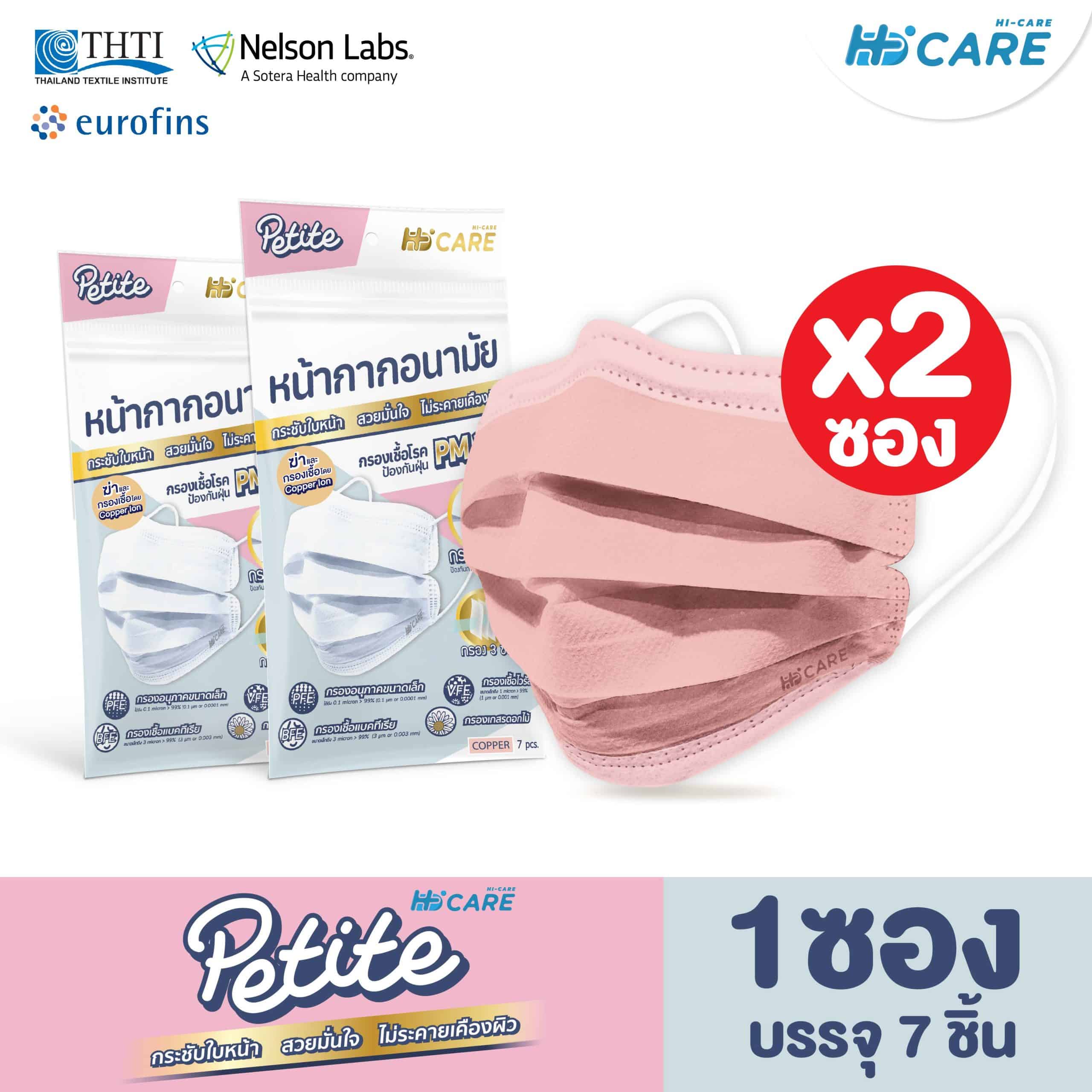 Hi-Care Petite Copper Ion [เซท 2 แพค] หน้ากากอนามัยกระชับใบหน้า สวยมั่นใจ ไม่ระคายเคืองผิว เหมาะสำหรับผู้หญิง หรือรูปหน้าเรียวเล็ก (1 ซองบรรจุ 7 ชิ้น) – สีคอปเปอร์