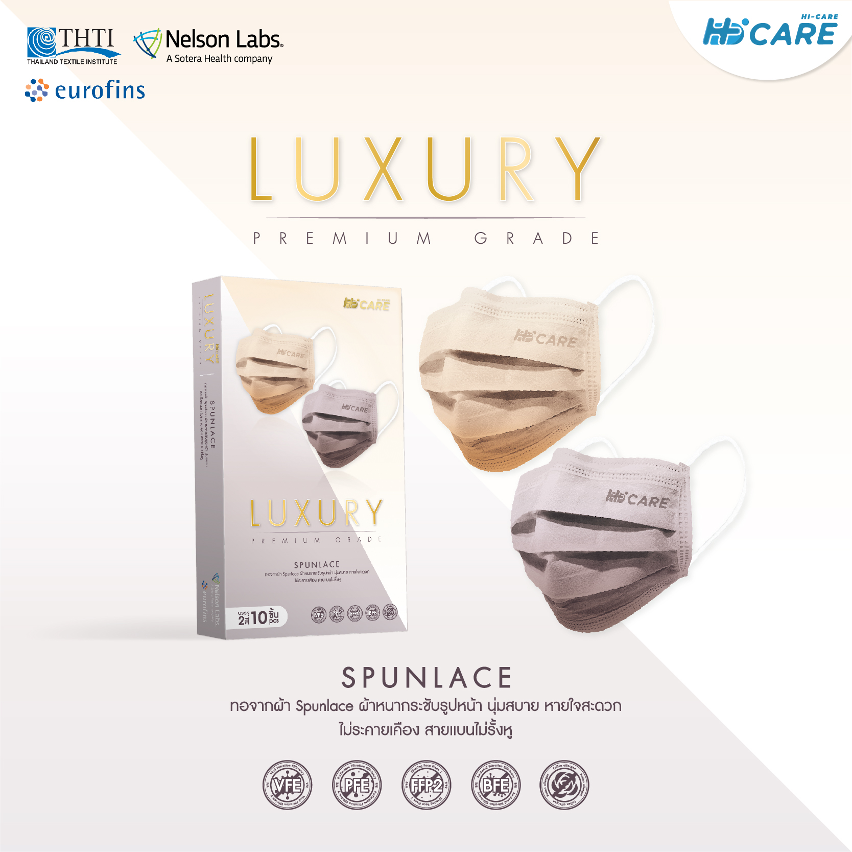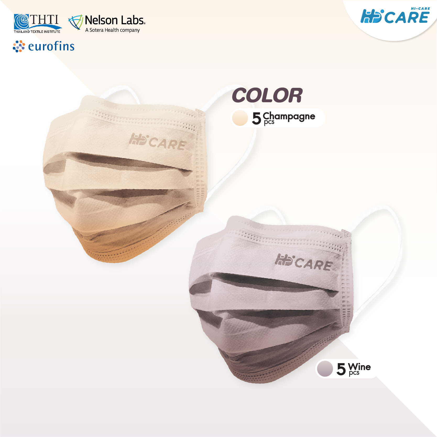 Hi-Care Premium Grade Luxury (สี wine+สี champagne) รุ่นผ้าทอพิเศษ จากผ้า Spunlace แผ่นกรอง 3 ชั้น ชนิดคล้องหู / 10 ชิ้น