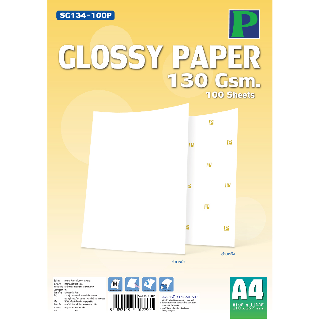 – กระดาษเนื้อสีขาวเคลือบน้ำยาพิเศษเกรด Premium ผิวมัน (ด้านหลังมีลายน้ำรูปตัว P) สำหรับเครื่องพิมพ์ Inkjet