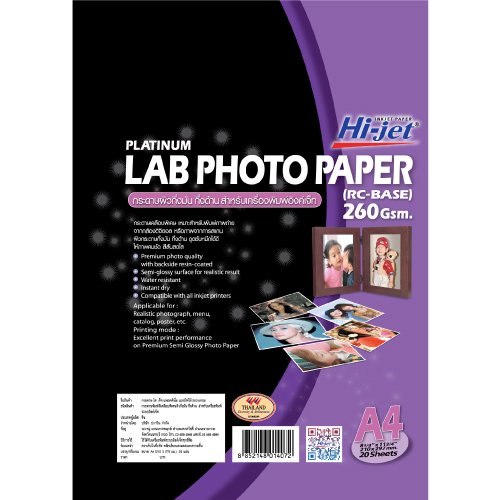 – เคลือบ Resin ที่ด้านหลังของกระดาษ เพื่อยืดอายุการทำงาน, เพิ่มประสิทธิภาพของคุณสมบัติการกันน้ำ (Water resistant), และให้ความรู้สึกเหมือนอัดรูปที่ร้าน